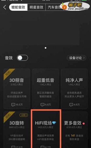 8也能找到HiFi音效,此处的HiFi现场就是接近现场原声的意思。