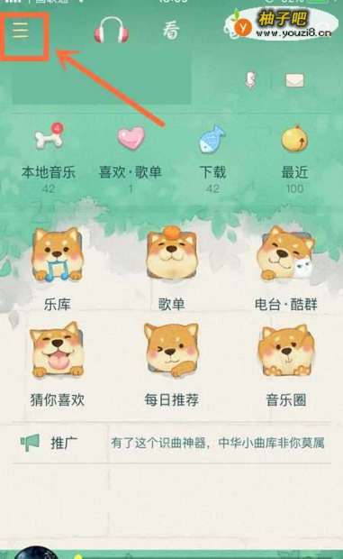 6再用酷狗音乐举例,打开酷狗以后,点击左上角的三横标志。