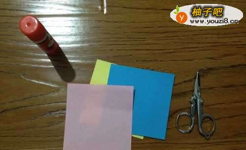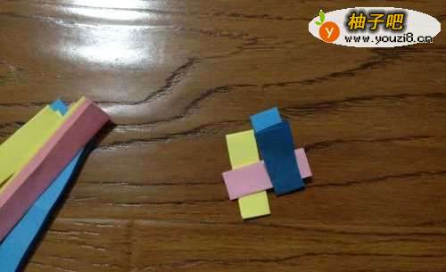 4用纸条将其加厚,包成小方块,用固体胶粘牢
