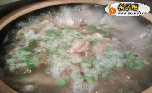 4焯水过的鸡块,清水洗一下,放入砂锅,倒入足够的水,