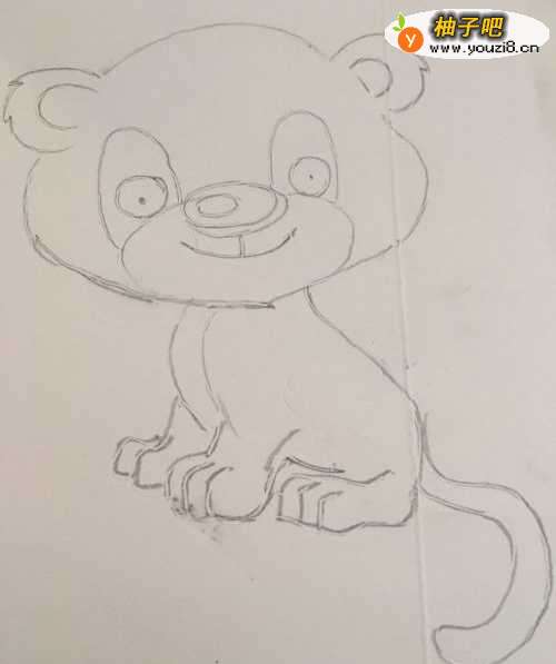 3第三步 再画上小花豹的眼眶以及眼睛 鼻子头 嘴巴等等