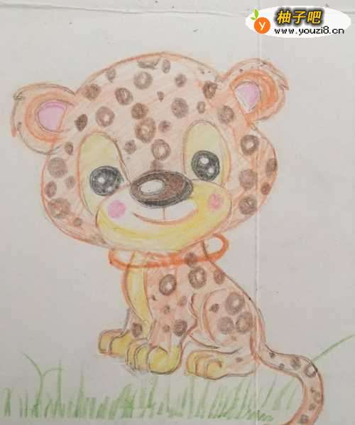 金钱豹 又叫花豹 文豹等 一种森林食肉猫科的哺乳动物 体型与老虎相似 都是比老虎小 机智灵敏 即会爬树 又会游泳 久而久之 成为食性广泛 胆大凶猛的食肉一族 下面我们就画画这个卡通小花豹的彩铅画