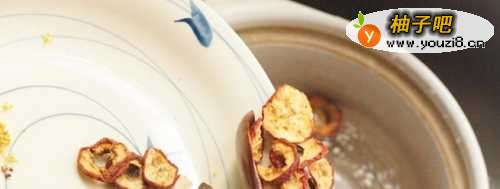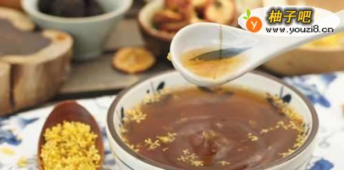 7起锅的10分钟左右放进桂花。加上冰糖一起煮融化即可