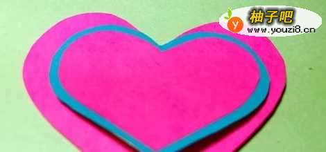 4随后把小一点的爱心按层次粘好,第一层是硬爱心,第二层是蓝色爱心,第三层是红色爱心,如图所示。