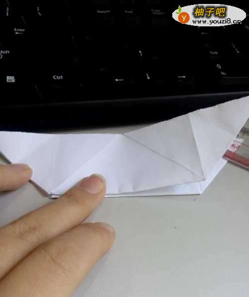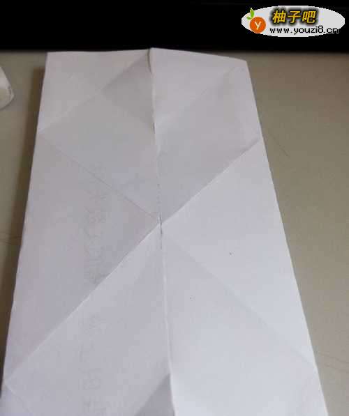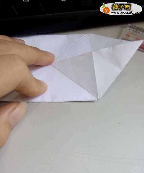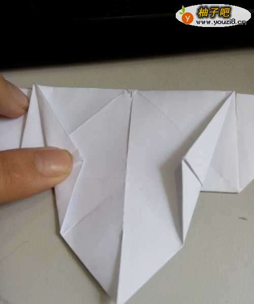 11然后将整个折纸模型进行对折,再进行一次反向的对折。