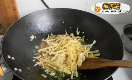 9放饼丝,盖在圆白菜上面,不要翻动,盖好,小火焖2分钟