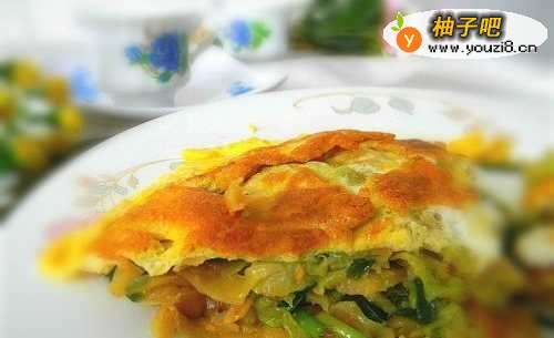 14鸡蛋液上面还没有凝固时,将炒好的饼丝放在没有凝固的蛋液上,让蛋液和饼丝粘在一起。16.可以小火多烘一会儿,这样非常好吃,但要用时晃动炒锅,可以在鸡蛋饼的一圈淋上少许油,防止鸡蛋粘锅底。