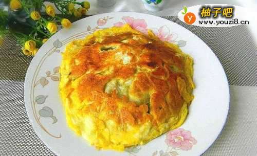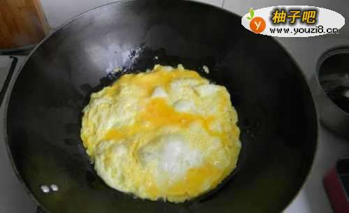 13炒锅在放少许油,倒入打散的蛋液。摊成大饼。