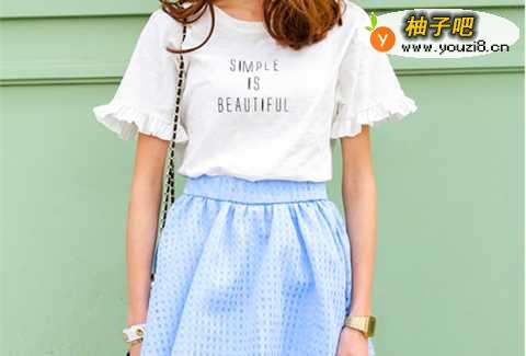 立夏开始,大部分地区进入了夏季,气温升高很快,一件荷叶半袖T恤搭配一条淡雅颜色的A字裙超级显瘦,且瞬间给人一种小清新的感觉,非常的优雅可爱且小女人味十足。