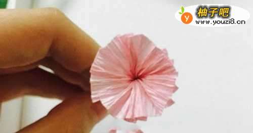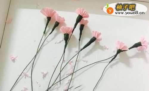 1、先从皱纹纸上剪出长方形,长宽比2:1左右2、把它长边反复折叠,做成手风琴的样子3、用铁丝从中间扎紧4、然后把花瓣稍拉伸、展开5、然后把皱纹纸的两头向上折6、拿出绿胶带,把下部粘贴起来7、粘贴完成是这个样子的,大家看下就有数了8、然后把花瓣整理下,让它向四周展开9、从顶部看的样子,这样就完成了一朵满天星
