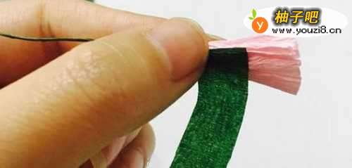 先从皱纹纸上剪出长方形,长宽比2:1左右。