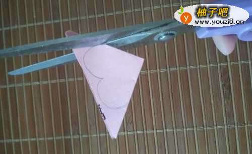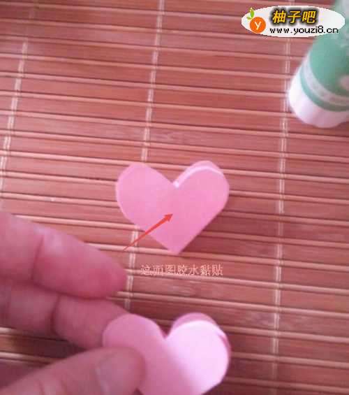 12然后在箭头一边的爱心处黏上胶水。将2个爱心链接起来。