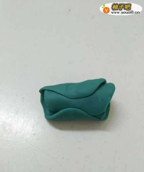 2先将蓝色的彩泥搓成一个一头尖一头圆的长条。