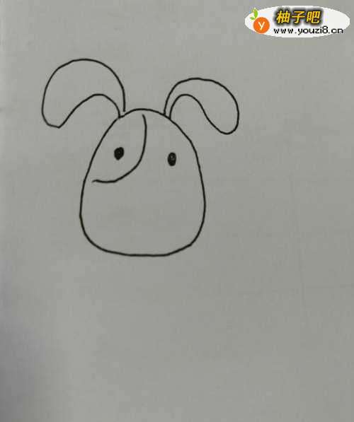 3第三步,接着把可爱的小狗的两只眼睛画出来,小狗的眼睛又黑又亮。