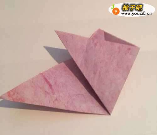3第三步 折叠完之后 按住中线下头拿起左边角 同样向右上三分之董蚊扯狠二的地方折叠 整理一下 均匀的分成三等分