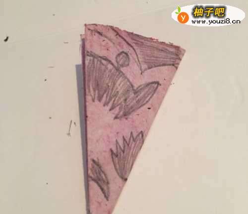 5第五步 剪完之后 拿起绘图铅笔 画上莲花草图和一滴水 把需要剪去的地方涂实