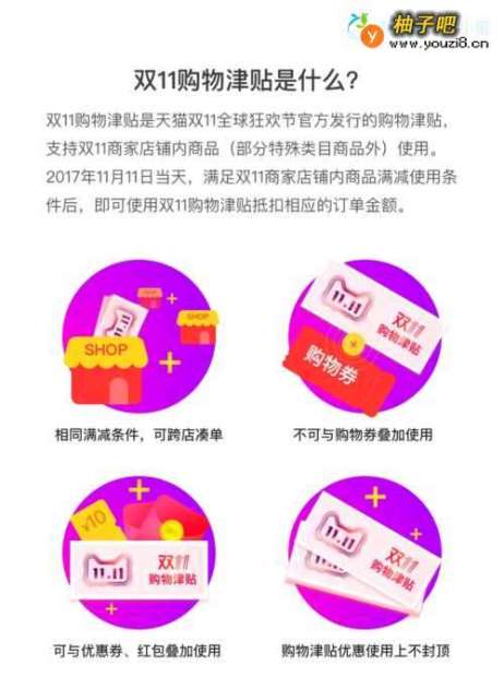 4双11购物津贴是天猫双11全球狂欢节发行的购物津贴,支持双11商家店铺内商品使用,可以多了解一下