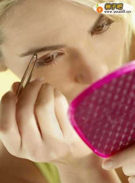 把镜子放在眼睛的下方(看得更清楚),用手把上眼皮提起来,让睫毛根部充分露出来 (让眼妆更漂亮)