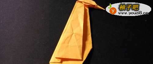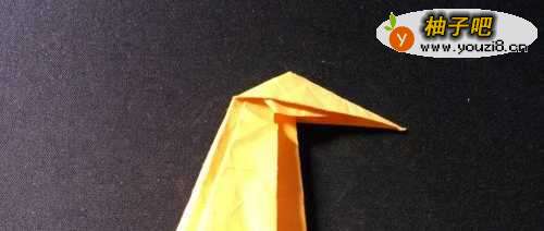 6把尖端向内凹折两次后再拉出完成企鹅的嘴部。