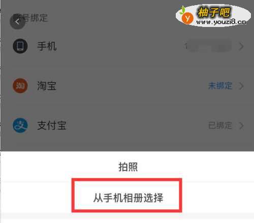 5点击头像后,从屏幕下方弹出如图所示选项,随便选择【拍照】现拍一张或者【从手机相册选择】选一张手机相册里已经有的图片都可以。小编打算从相册中选一张,于是点击【从手机相册选择】。