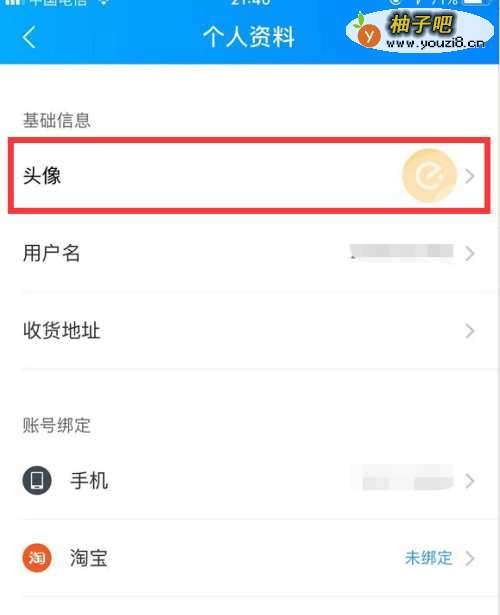 4点击>图标后,进入个人资料页面。点击个人资料页面的第一行【头像】,如图所示。