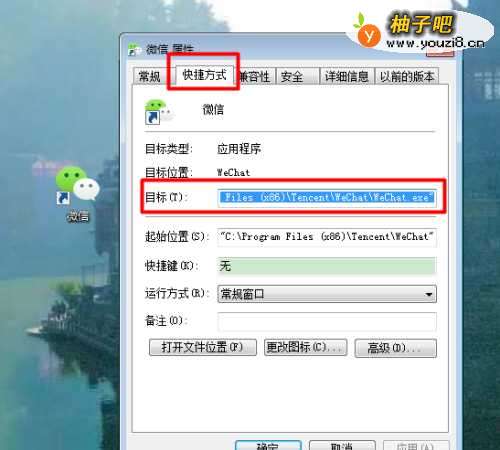 4右键点击微信快捷方式,选择属性。
