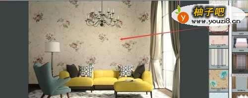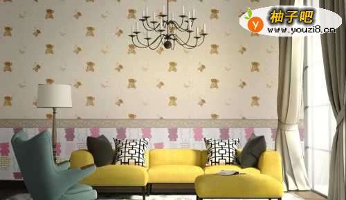 5也可以添加墙裙腰线。沿选区边缘选定一起点,鼠标左击向下推拽至墙脚,再铺贴其它款壁纸即可。腰线同理;