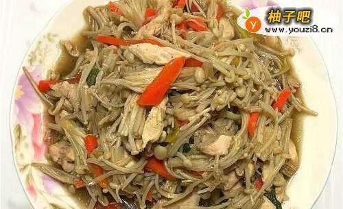 金针菇炒鸡胸肉,简单的食材,简单的做法。