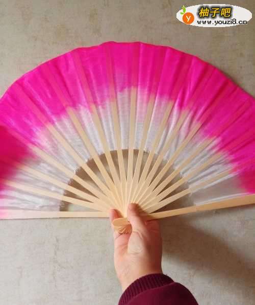 2握扇在跳舞中,多用于推扇的动作,因为胳膊向远处推后,手指方便合扇、打开收回自如,这是在跳舞中常用的手法动作。