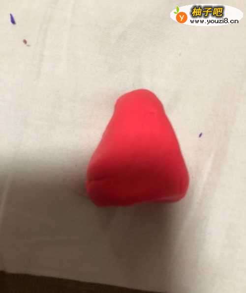 3在拿出粉色的彩泥揉成三角形,跟圆形一连接,在拿出黄色的彩泥揉成成条在小辫子下面围上一圈,在拿出白色的彩泥揉成两个小长条粘到两边。