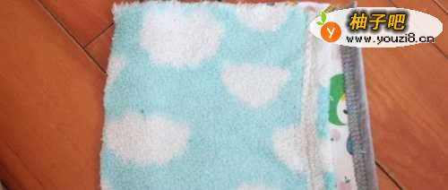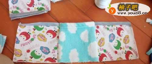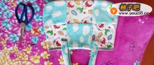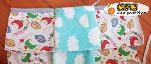 12把两面正面对正面,叠好,把下面的两个角剪成圆角,然后缝合