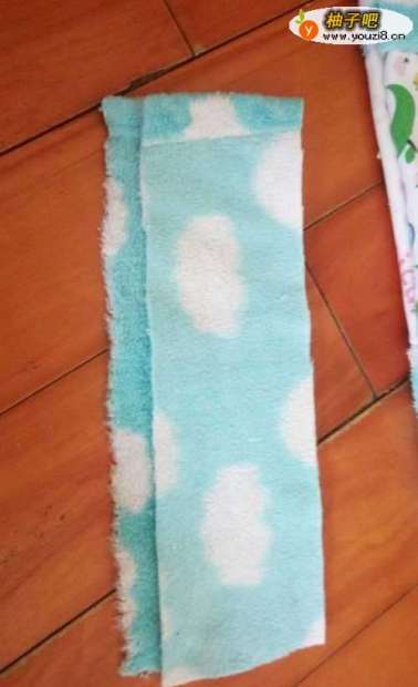 14下面是包带,把两个长方形的布条正面对正面修剪合适的长度,然后缝合