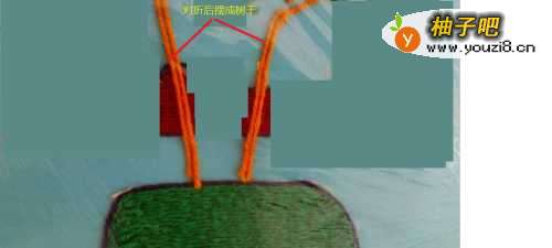 3第三,用两根浅橙黄色的线分别对中折一下——然后按一定的弯度来摆成椰树的树干,斜度和弯度由自己随意摆放。