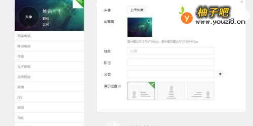6进入工作区,填写联系方式,如:电话、传真、QQ、地址、LOGO等。