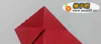 3展开,把右边的角对折过去,再展开,把左边的角折到正中间。
