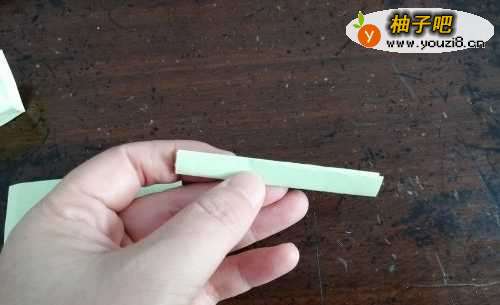 6我们再把彩纸中间继续对折,把两头捏平,如图三。另一张彩纸同样操作,如图四。