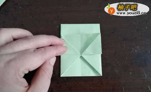 4把上边的四个角折到里边去,如图二。打开后,把四条边分别向内折,折好后就是图五的样子。