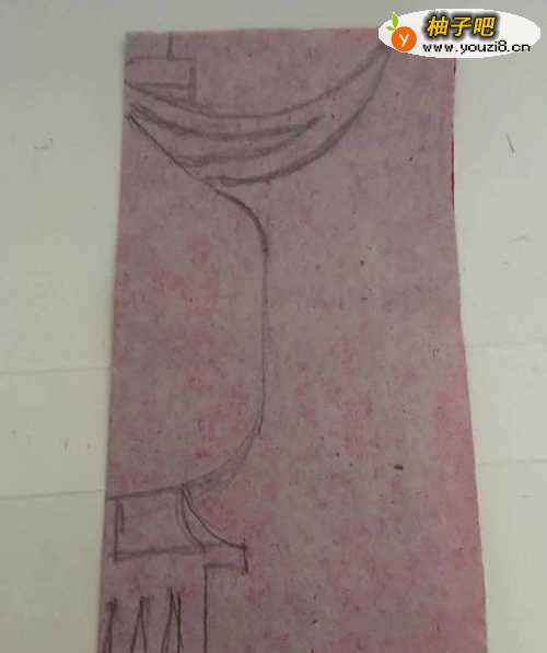 2第二步 折叠完之后 把它竖起来 双折边在左边 然后拿起绘图铅笔画上宫灯灯体的外线草图轮廓