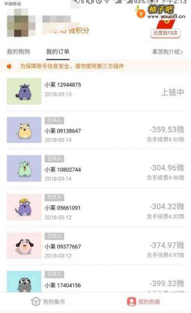 3退出来找另一只狗狗,一直找到成功,一般往下拉价格可以接受的就购买,成功就会显示订单已提交,回取7微左右的手续费(好像无论价格高低都是);