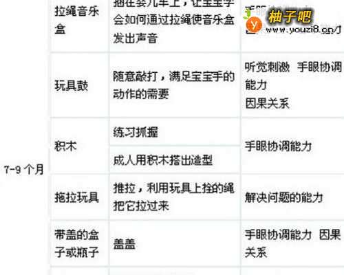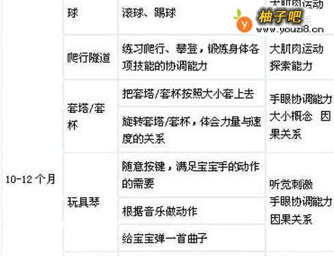 这个阶段的宝宝,手眼协调性有了很大的提高,拇指和食指的配合也会越来越灵活。宝宝喜欢摆弄玩具,而且他也开始有了记忆力,当大人说一些失去的时候,宝宝不需要看图片他就能够明白家长指的是什么。这个时候的宝宝已经建立起了“客体永久性”的概念,不会再犯幼稚错误。