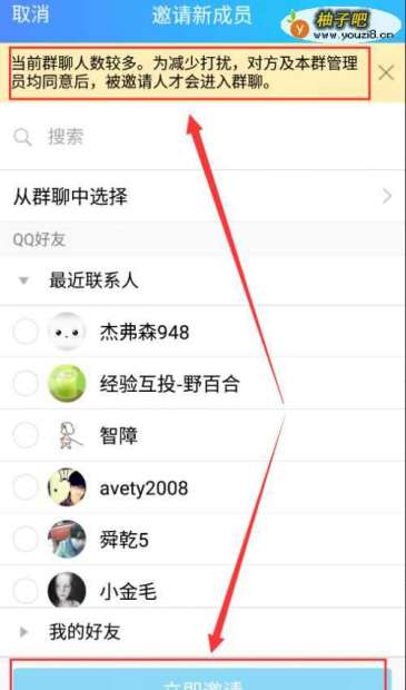 6最后点击【立即邀请】,只要你的好友和群管理员都同意,那你的好友既可以被你拉进群了。