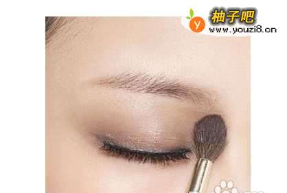 3在上眼睑涂一层淡淡的棕色眼影,以减轻浮肿的感觉,然后选择与服装同色系但鲜艳一些的颜色,涂在眉骨下,以增强眼部的立体感;
