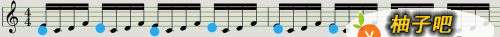 7(每一组十六分音符的第一小拍标注蓝色的标记的位置,表示重音,也就是和节拍器拍点的位置)