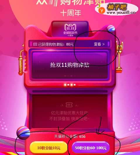 6可以查看现有的津贴,也可以用天猫积分抽取