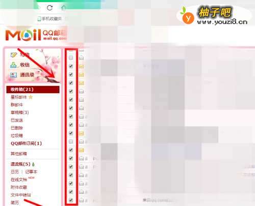 6在每封邮件前方可以看到都有正方形的小方块,如果我们想要清理不要的邮件,我们在要删除的邮件前小方块内打上勾,随后点击下方的删除选项即可;
