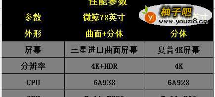 在配置方面,微鲸78英寸搭载的CPU是6A938芯片,也是目前最高的芯片配置,为Mali-T820,支持4K HDR高动态显示标准,同时具备MEMC运动画质增强画质画质,内存空间为3G。小米电视70英寸采用的CPU为6A928,GPU为Mali 760,内存空间为2G,同样具备动态补偿技术,画质方面为4K画质,相较而言并不具备HDR。