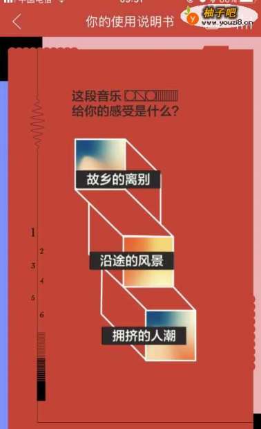55.然后就是根据听到的声音和音乐进行选择自己的直观感受,大概有6个