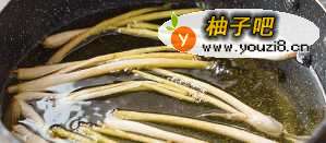 2取用葱白,放入油锅,待葱白炸至焦黄时捞出弃用,葱油留用。