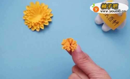 13把卷好的粘在花朵中间,一朵漂亮的菊花就做好了。
