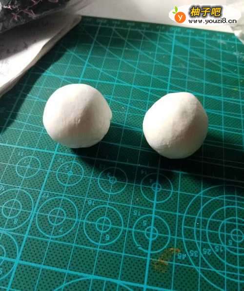 先用白色的粘土搓两个球,并将两个球上下叠在一起,中间可以用牙签固定一下